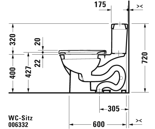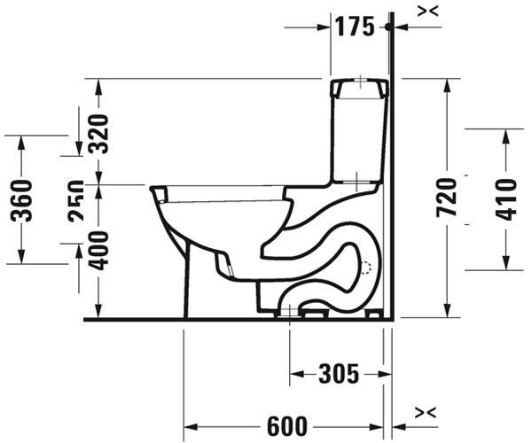 美式座便器, 背靠墙式, 加长型带虹吸喷头, 305 mm/12" 坑距, 单冲水装置,顶部冲水, 适用于 SensoWash® Starck, 垂直出水, 1.28加仑/冲 (4.8升)