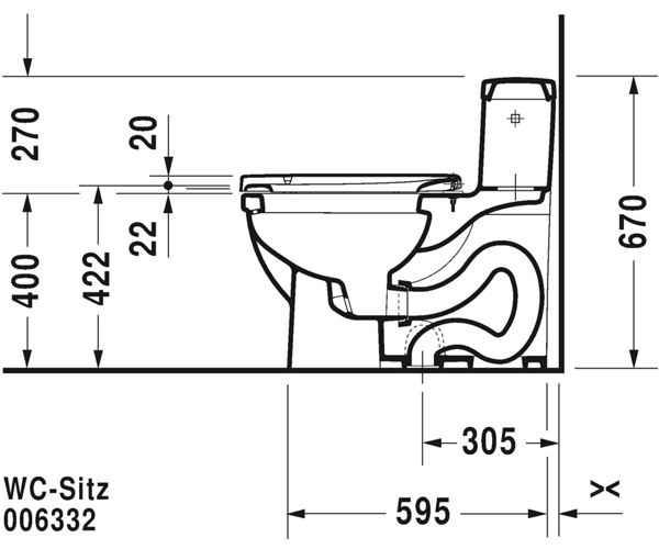 型号 212001 美式座便器, 适用于 SensoWash® Starck, 加长型带虹吸喷头, 305 mm/12" 坑距, 带单冲水装置,带侧面提拉杆, 3"/80 mm 挡板阀, 垂直出水, 1.28加仑/冲 (4.8升) 附加信息 适用于SensoWash®电子座便器座圈,请见xxx页。 Philippe Starck 设计 尺寸:370 x 715 mm 可变形式 ©2120010001
