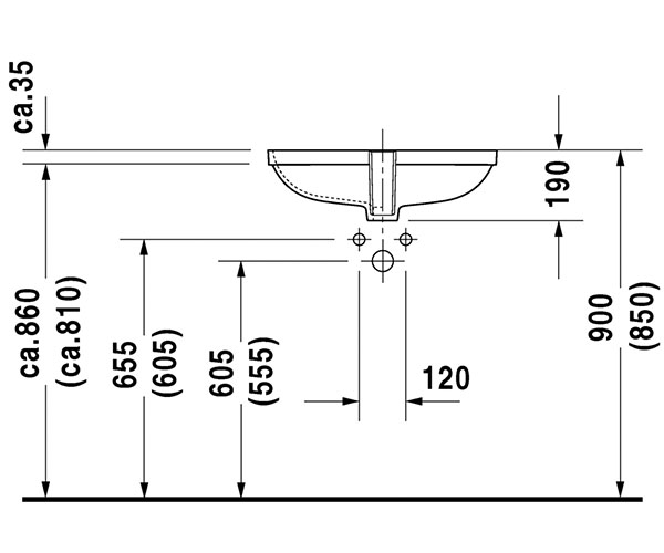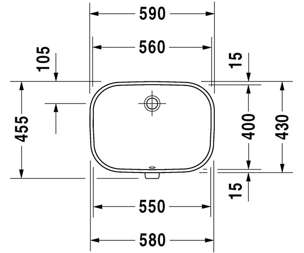 台下式脸盆, 有溢水口, 无龙头安装台, 包含安装木质台面配件, 560 mm 附加信息 台下式脸盆尺寸指的是脸盆内部尺寸 sieger design 设计 尺寸 560 mm 可变形式 • 没有龙头孔 0338560000