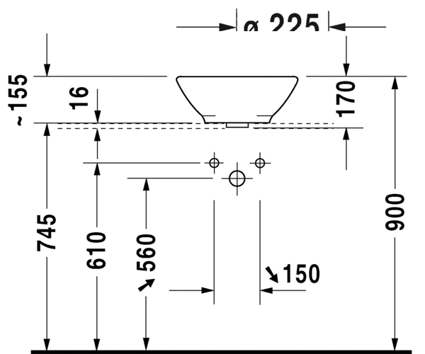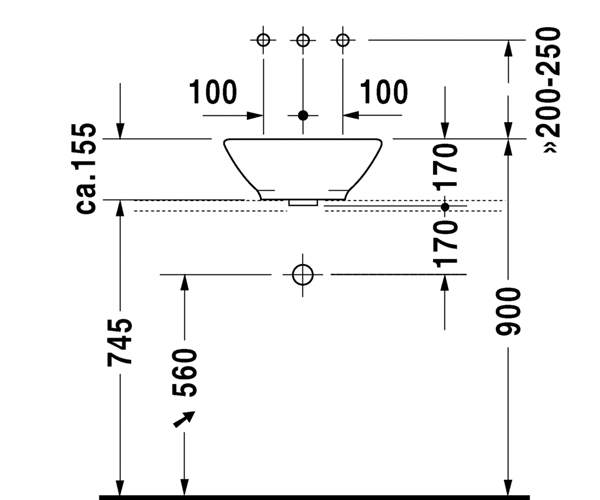 DuraStyle 嵌入式脸盆 0372600000台上式脸盆, 无溢水口, 无龙头安装台, 600 ...