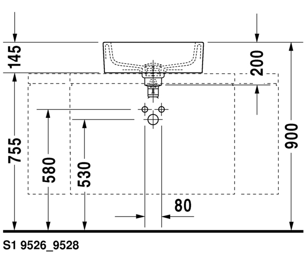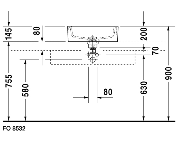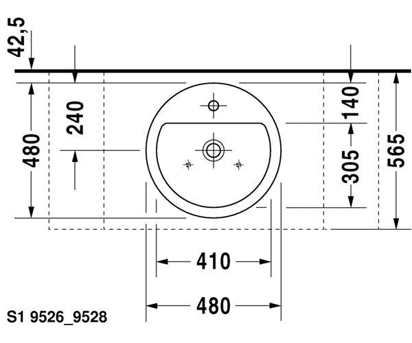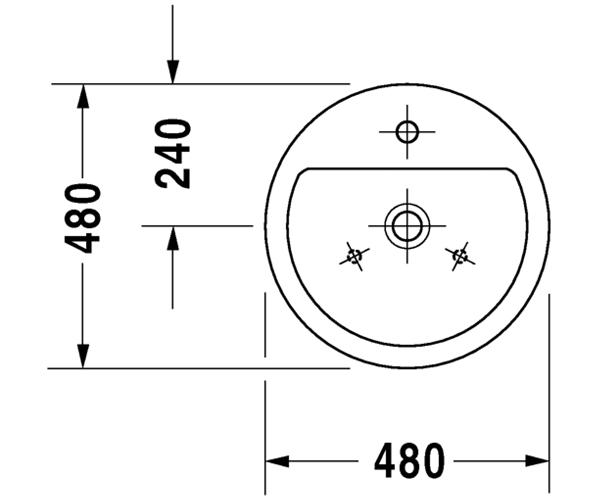 下表面磨光, 有溢水口, 包含配件, 有安装龙头台, Ø 480 mm