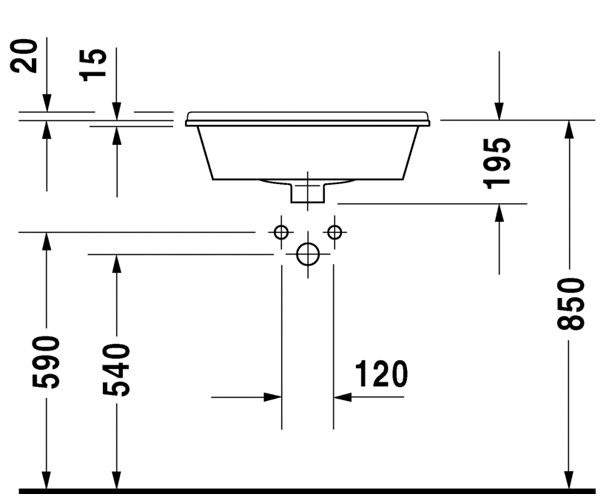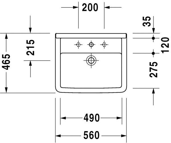 台上式脸盆, 有溢水口, 有安装龙头台, 560 mm