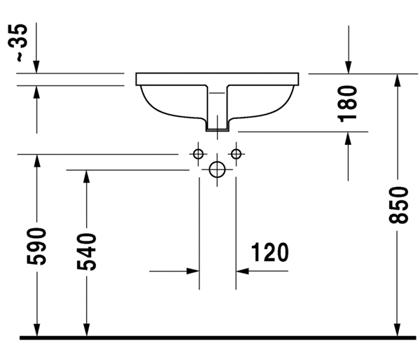 型号 030549 台下式脸盆, 有溢水口, 无龙头安装台, 包含安装木质台面配件, 490 mm 附加信息 台下式脸盆尺寸指的是脸盆内部尺寸 Philippe Starck 设计 尺寸:490 mm 可变形式 没有龙头孔 0305490000