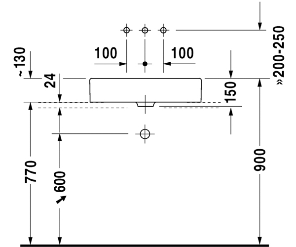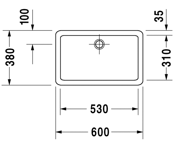 下表面磨光, 无溢水口, 无龙头安装台, 包括配件, 600 mm